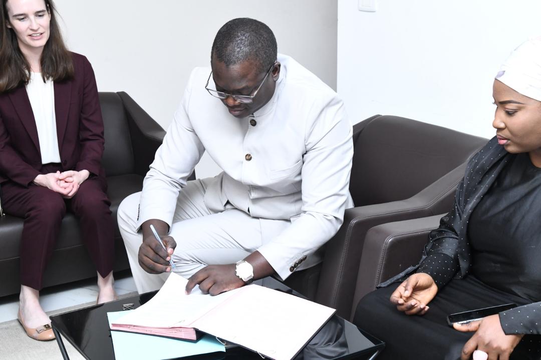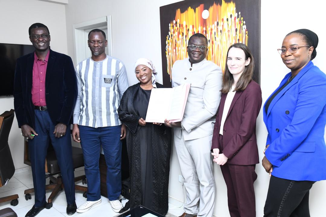La cérémonie de signature, organisée au siège de l’ARP, s’est déroulée en présence du Directeur général, M. Alioune Ibnou Abou Talib Diouf, entouré du Secrétaire général, M. Alassane Mbengue, et du Conseiller technique, M. Moustapha Niang.